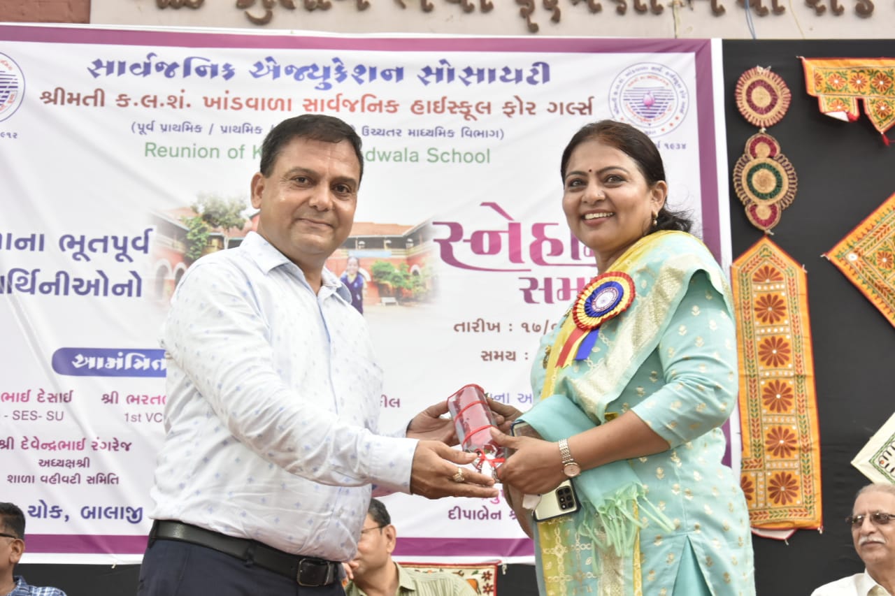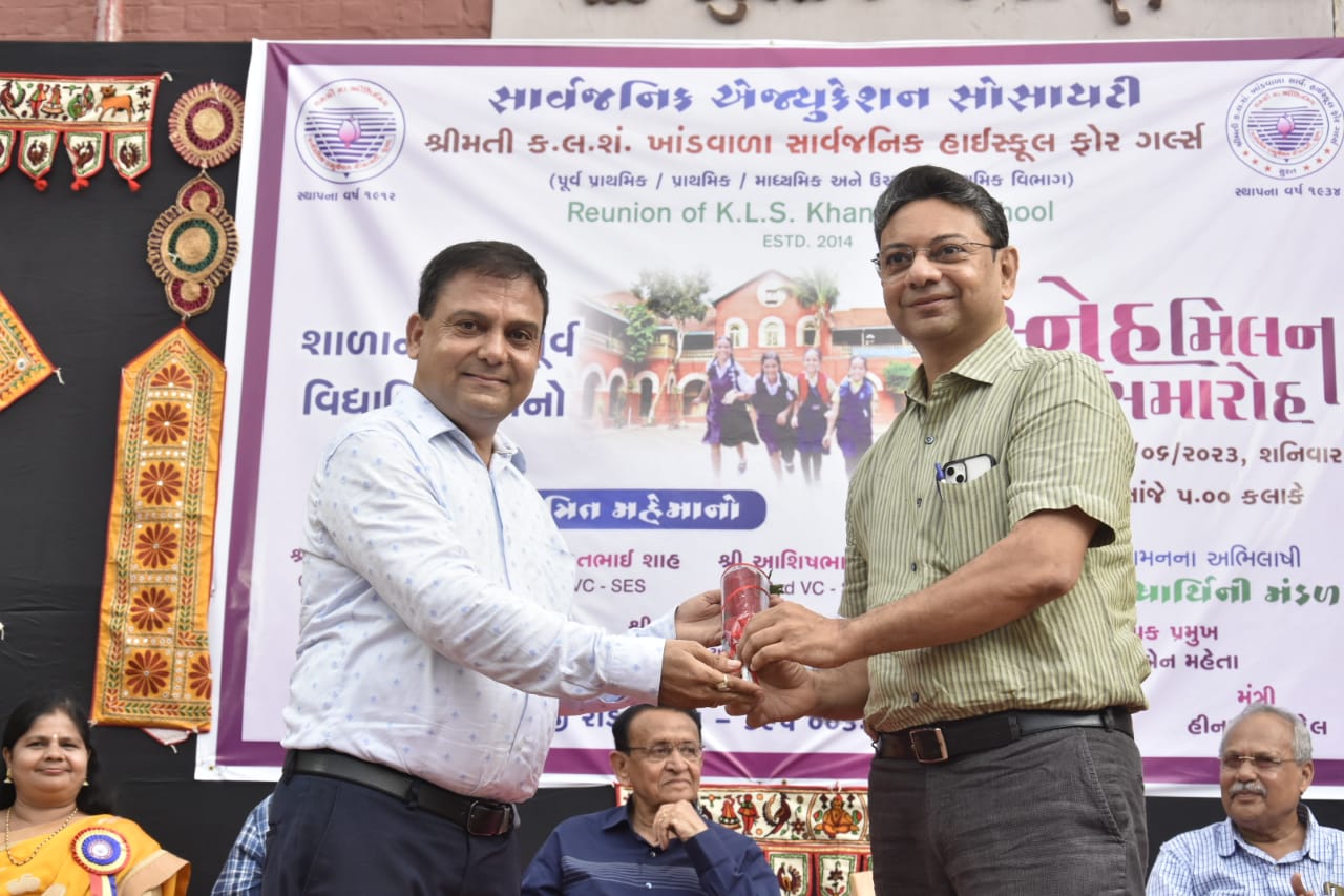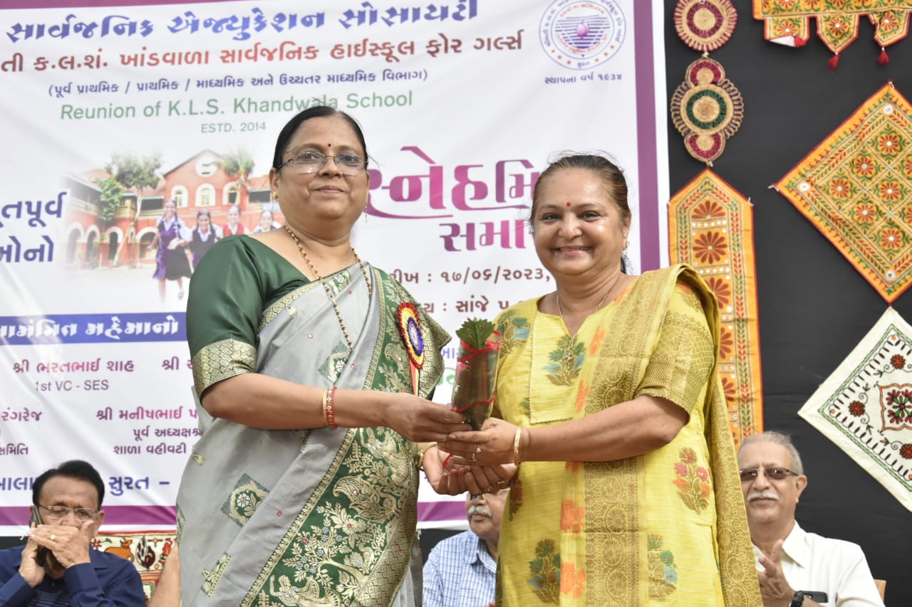 શ્રીમતી કે. એલ. એસ. ખાંડવાલા સાર્વજનિક હાઇસ્કુલ ફોર ગર્લ્સમાં તારીખ 17 જૂન 2023ને શનિવારના રોજ શાળાના વહીવટી અધ્યક્ષશ્રી દેવેન્દ્રભાઈ રંગરેજસાહેબ તથા ભૂતપૂર્વ વહીવટી અધ્યક્ષશ્રી મનીષભાઈ પાનવાલા સાહેબના માર્ગદર્શન હેઠળ ભૂતપૂર્વ વિદ્યાર્થીની મંડળ દ્વારા સ્નેહમિલન સમારંભ તથા શાળા સ્થાપના દિનની ઉજવણી કરવામાં આવી હતી. 89 વર્ષ પૂર્ણ કરી શાળા 90 ના વર્ષમાં પ્રવેશ કરે છે ત્યારે આ કાર્યક્રમમાં સાર્વજનિક એજ્યુકેશન સોસાયટીના અધ્યક્ષશ્રી રાજેશભાઈ દેસાઈ સાહેબ, દ્વિતીય ઉપાધ્યક્ષશ્રી આશિષભાઈ વકીલસાહેબ, શાળા એકેડેમી કમિટીના ચેરમેન શ્રી અજીતભાઈ શાહસાહેબ તેમજ મંત્રીશ્રી સચિનવાલાસાહેબે ઉપસ્થિત રહી કાર્યક્રમને દીપાવ્યો હતો. આ કાર્યક્રમમાં અંદાજે 180 ભૂતપૂર્વ વિદ્યાર્થીનીઓએ ઉત્સાહભેર હાજરી આપી હતી. આ કાર્યક્રમમાં શાળાના ભૂતપૂર્વ આચાર્યશ્રીઓ તેમજ ગુરુજનોને વિશેષ માન આપી આમંત્રિત કરવામાં આવ્યા હતા. આ કાર્યક્રમમાં સુરત શહેરના જાણીતા વકીલશ્રી ભદ્રાબેન જોશી તેમજ કોર્પોરેટરશ્રી રેશમાબેન લાપસીવાલા તથા સોનલબેન દેસાઈએ હાજરી આપી કાર્યક્રમની શોભા વધારી હતી. શાળાના ભૂતપૂર્વ વિદ્યાર્થી મંડળના પ્રમુખશ્રી દીપાબેન શ્રોફ, મંત્રીશ્રી હીનાબેન પટેલ તથા સોનલબેન એન્જિનિયર, ભાવનાબેન પાનવાલા, બેલાબેન પચ્ચીગર, મનીષાબેન પાનવાલાએ કાર્યક્રમને સફળ બનાવવામાં વિશેષ યોગદાન આપ્યું હતું. શાળાના માધ્યમિક વિભાગના આચાર્યશ્રી સરલાબેન ચૌધરી તેમજ પ્રાથમિક વિભાગના આચાર્યશ્રી હેમલત્તાબેન શર્મા તથા માધ્યમિક વિભાગના ક્લાર્ક બહેનશ્રી હેતલબેન ગાંધી તથા પ્રાથમિકના શિક્ષકશ્રી સાહિરભાઈ ચક્કીવાલાએ કાર્યક્રમના આયોજન માટે સહકાર આપ્યો હતો.